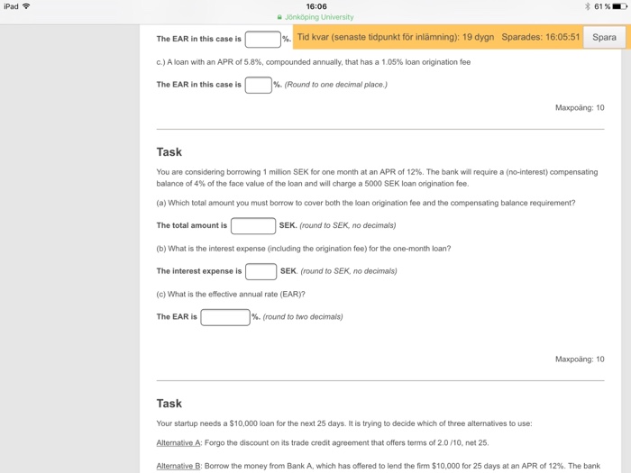 Solved Ipad F 16 06 61 Tid Kvar Senaste Tidpunkt For In